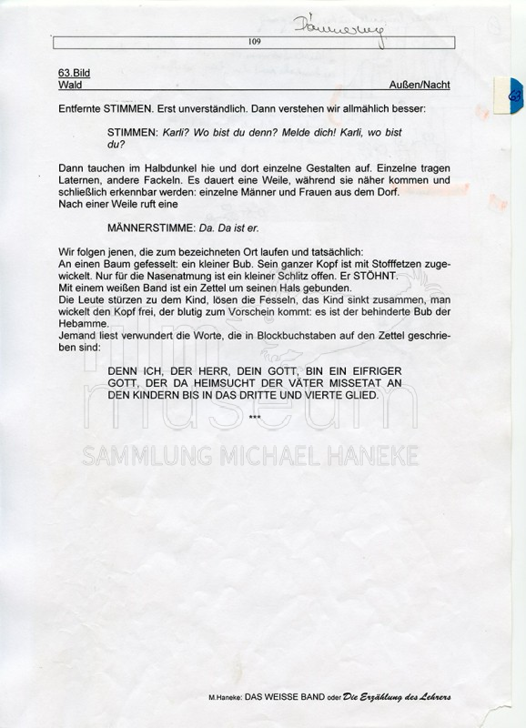 | Contains: | 1 Exemplar (dt.) mit Drehbuchseiten (rechts) und Anmerkungen, Storyboards, szenischer Auflösung, Notizen (links). Enthält außerdem Szenenabfolge (Stand 10.4.2008), VFX-Liste, sowie Personenverzeichnis |