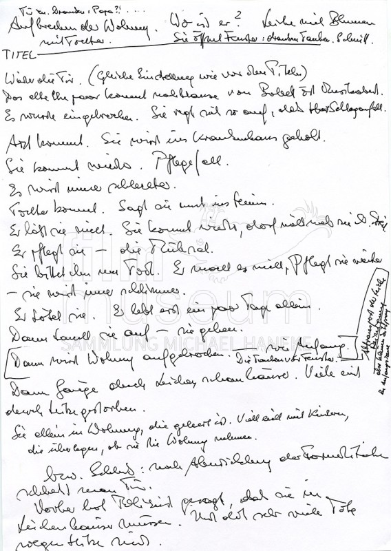 | Contains: | Konvolut, bestehend aus 13 teils losen, teils gehefteten, handschriftlich beschriebenen Blättern. Außerdem eine Bleistiftskizze des Grundrisses der Wohnung. Unterschiedliche Größen (A4, A6) |