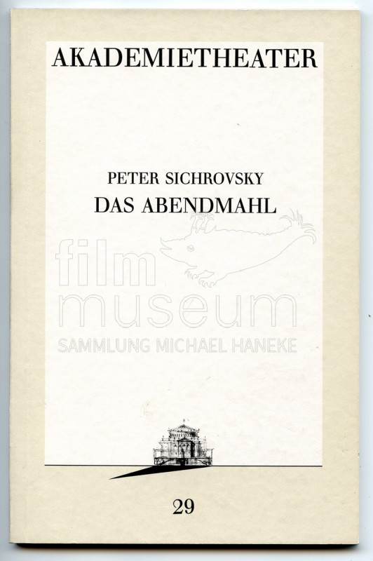 | Contains: | "Das Abendmahl" von Peter Sichrovsky, Inszenierung: Michael Haneke. Stücktext und ergänzende Texte, Gespräch mit Peter Sichrovsky. Burgtheater Programmbuch Nr. 29. Premiere im Akademietheater: 18. März 1988 |