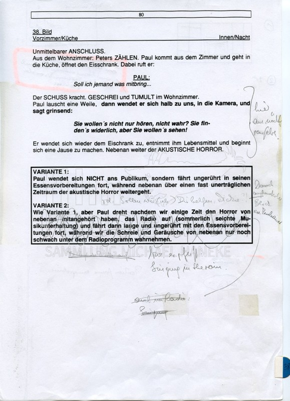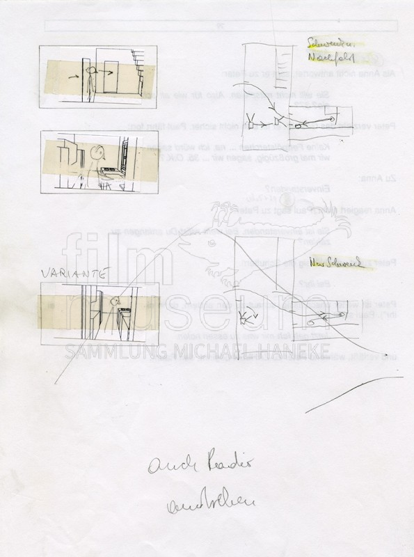 | Contains: | Regiedrehbuch, 1 Exemplar (dt.) mit handschriftlichen Anmerkungen, Skizzen (Storyboard) und eingefügten Fotos bzw. Laserkopien, computerunterstütze Raumansichten, Änderungen und Ergänzungen zur masch. Vorlage, Szenenaufteilung durch Registereinfügung in 52 Bilder (Szenen) |